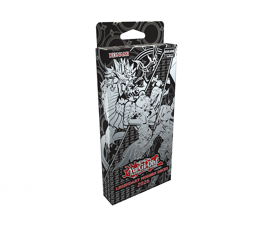 Legendary Modern Decks 2026 enthält DREI komplette, spielbereite Decks, jeweils mit 55 Karten (1 Secret Rare, 6 Ultra Rares, 48 Commons), sowie zusätzlich eine 56. Karte, bei der es sich um ein weiteres Exemplar von 1 von 6 Karten aus diesem Deck handelt. Es besteht eine BonusChance auf ein Upgrade auf eine Starlight Rare! Jedes Deck ist turnierbereit mit einem vollständigen Main Deck und einem Extra Deck. Inklusive brandneuer Karten!